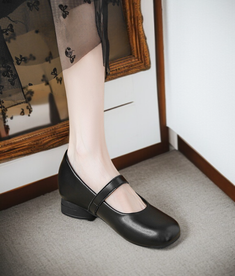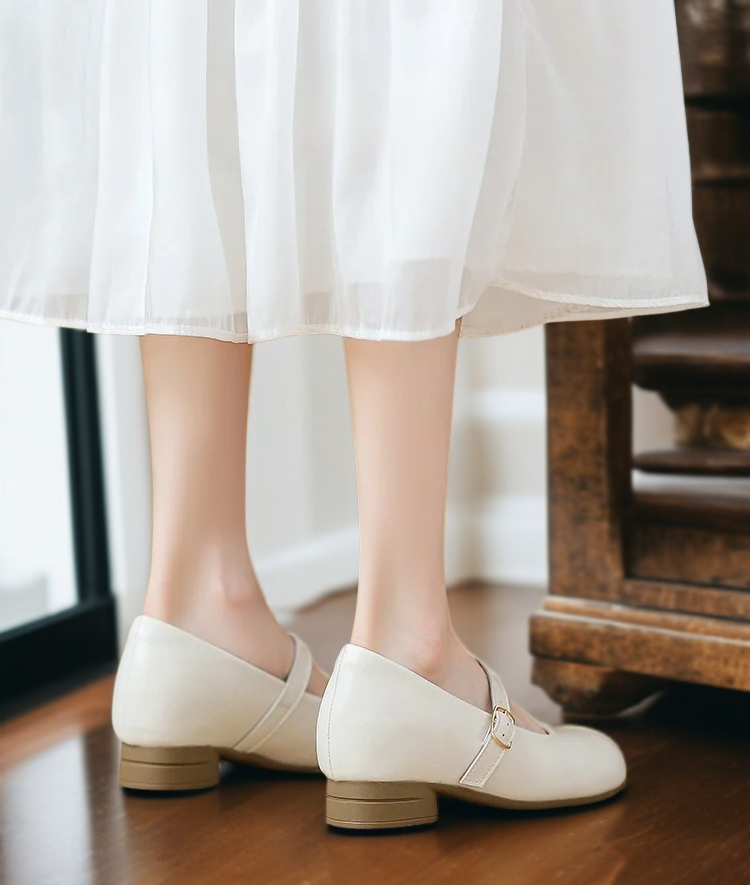 フェアリースタイルの上品なメリージェーンシューズ(女性用)2025年秋新作、シングルストラップのラウンドトゥシューズ(スカート付き)