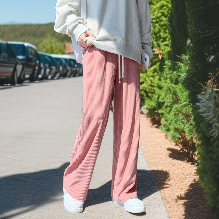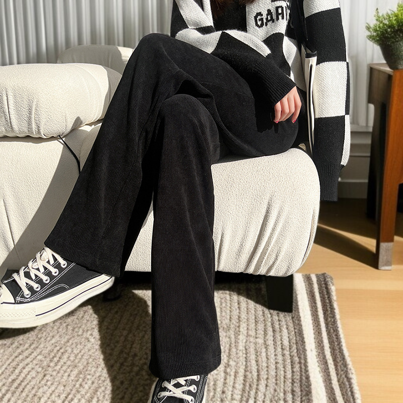 ワイドパンツ レディース シュニール織 中綿入り とろみ ハイウエスト ストレート カジュアルパンツ